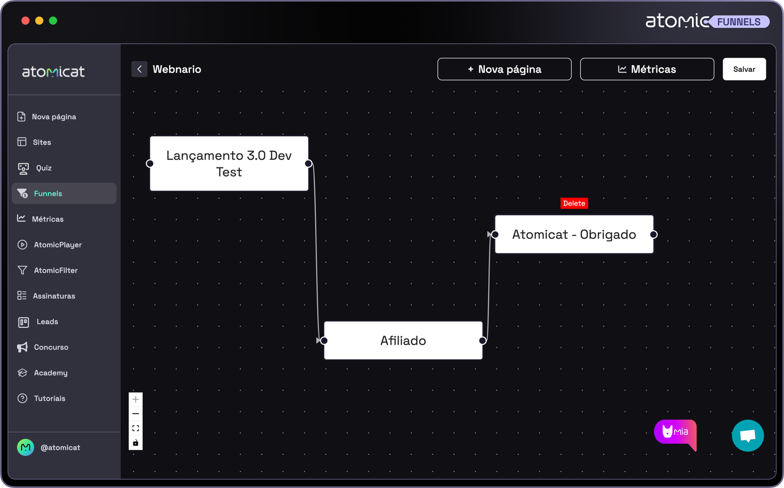Com o AtomicFunnels, você cria funis visuais arrastando os blocos sem precisar integrar ferramentas externas.
