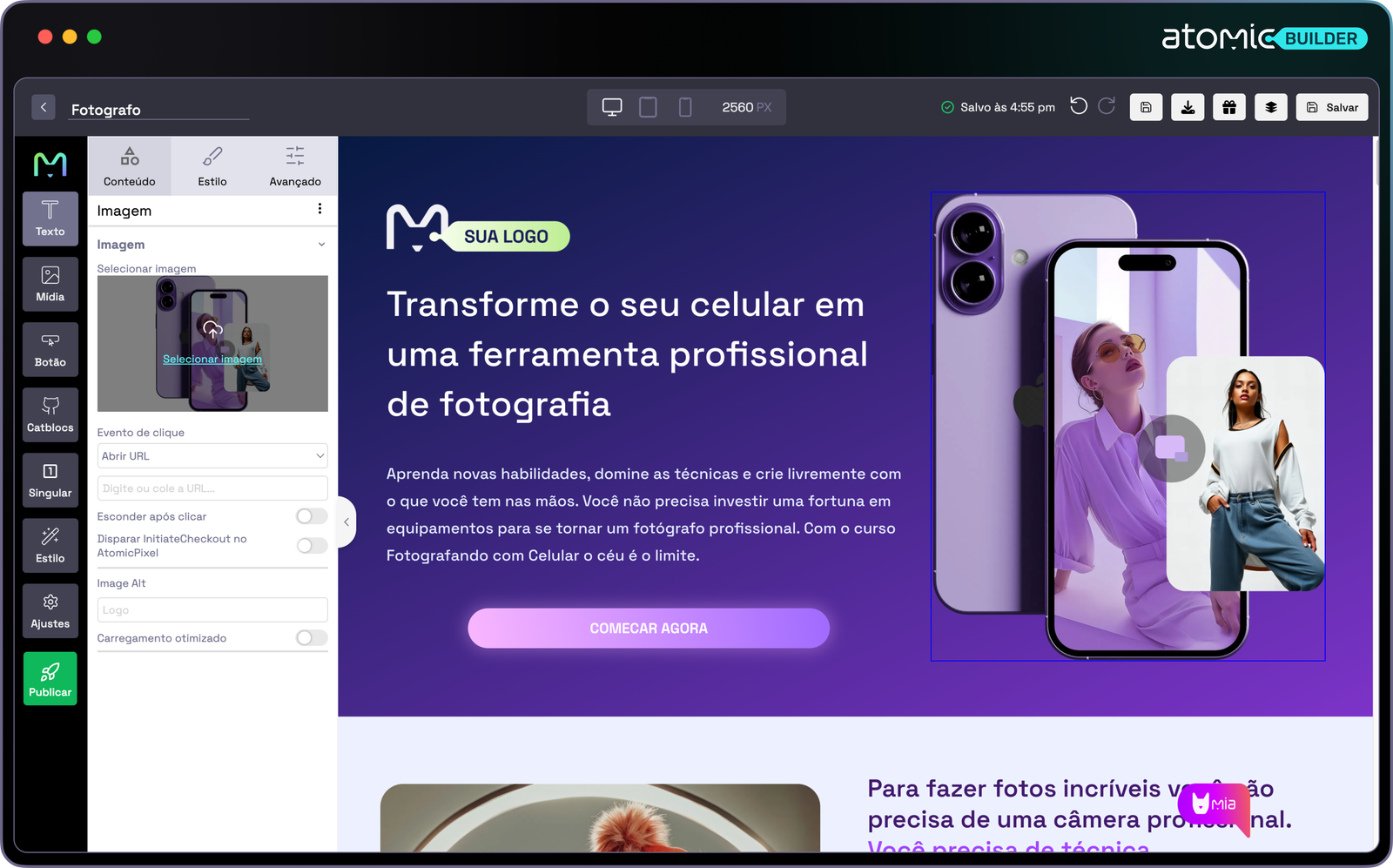 Construa páginas de alta conversão e sites profissionais, com tecnologia HTML, em poucos cliques mesmo sem saber programar.
